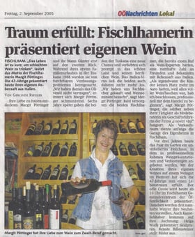 FISCHLHAM. "Das Leben ist zu kurz, um schlechten Wein zu trinken", lautet das Motto der Fischlhamerin Margit Pöttinger. Die 47-Jährige präsentiert heute ihren eigenen Rebensaft aus Italien.